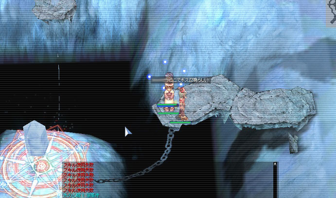 中央の鎖に繋がれた浮かんだ(?)岩から