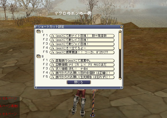 回復剤などの補充、HPの回復、マクロ設定。