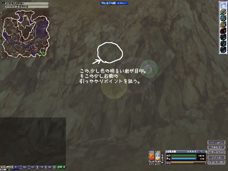 H-8の壁(左側の岩の少し右、壁全体のやや中央左)に